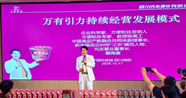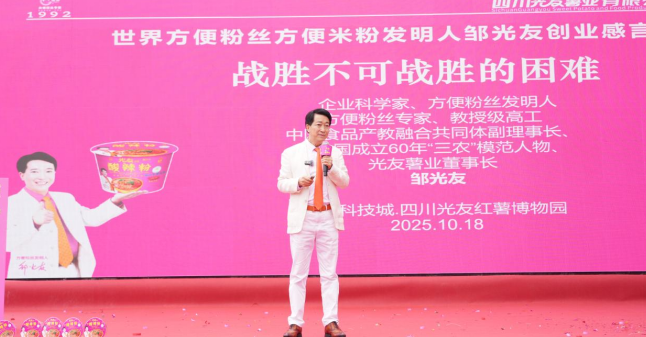 邹光友提及创业初心 —— 生于四川三台县的他,从小与红薯结缘,1992 年辞去科技区长职务,携 500 元骑着三轮车在街上卖光友精白红薯粉丝,把路人的嘲笑和质疑,当成是对他意志的磨炼和创业的挑战,并悟出 “干他人不敢干的事” 是成功关键,还分享 “意愿百分百,方法无限多” 等理念。他强调 “粉丝心态” 的重要性,以追星热情研制、销售粉丝,33 年间掀起七次粉丝技术革命,2025 年更全球首创低 Gi 健康粉丝。