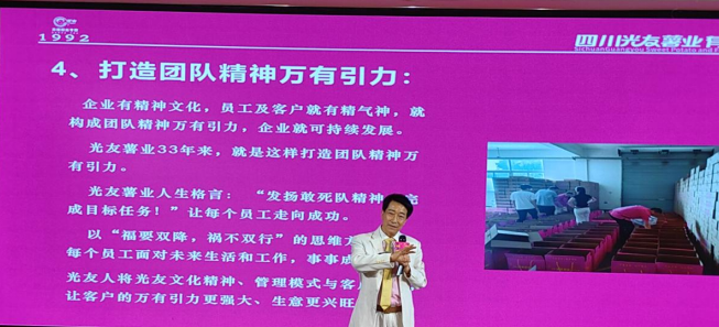 成都大学商学院院长张千友教授 博士发表《企业越发展、管理越重要----光友粉丝管理模式研究》演讲: