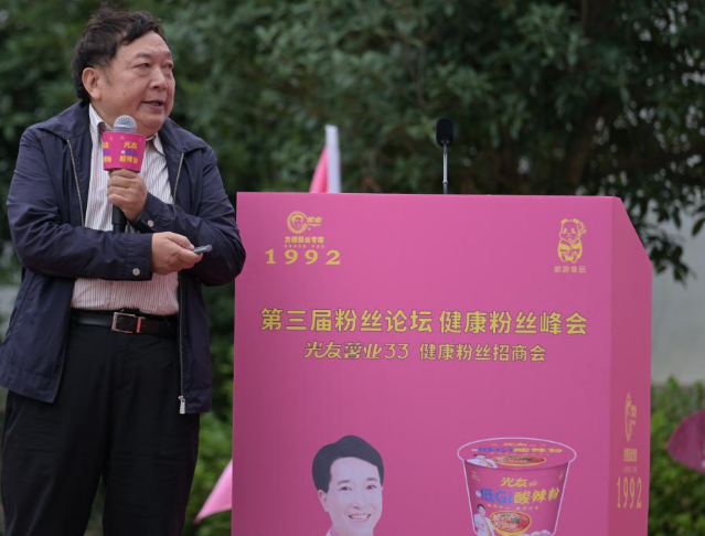 同时,他分享光友可持续经营模式,包括按五大标准、五大阶梯执行的管理模式,“拜访、理货” 等营销四化模式,及每日绩效考核机制。此外,提及光友酸辣粉、绵阳米粉获低 Gi 认证,产品畅销国内外,并计划与县乡村社合作建薯类加工企业、在 “一带一路” 布局智能制造,邀请嘉宾共享经营模式,携手推动健康粉丝产业发展。