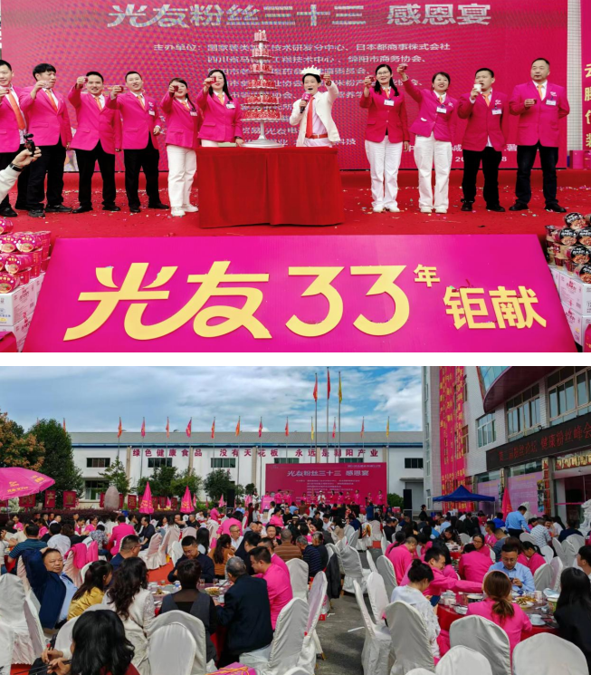 现场参会的嘉宾有来自全球嘉宾、专家、企业家、经销商、供应商、战略合作等代表,企业科学家、方便粉丝专家、世界方便粉丝发明人、教授级高工、光友薯业集团董事长邹光友携光友粉丝团以及来自中国网、四川广播电视台等媒体朋友600余人,抖音、快手、视频号、微博、小红书、搜狐、新浪、凤凰网、线上直播间参加活动的千万粉丝宝宝共同见证本次盛会。